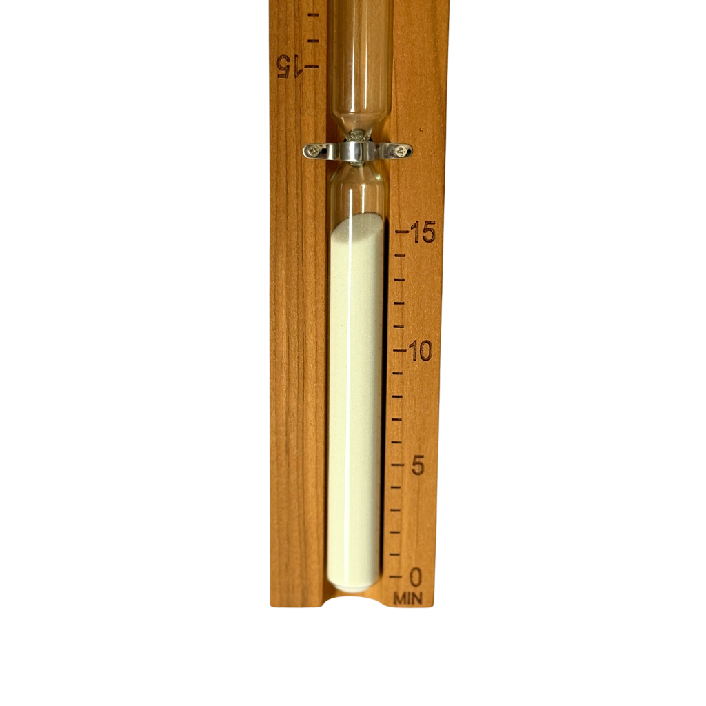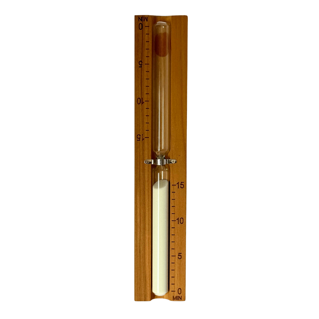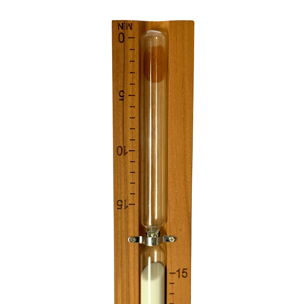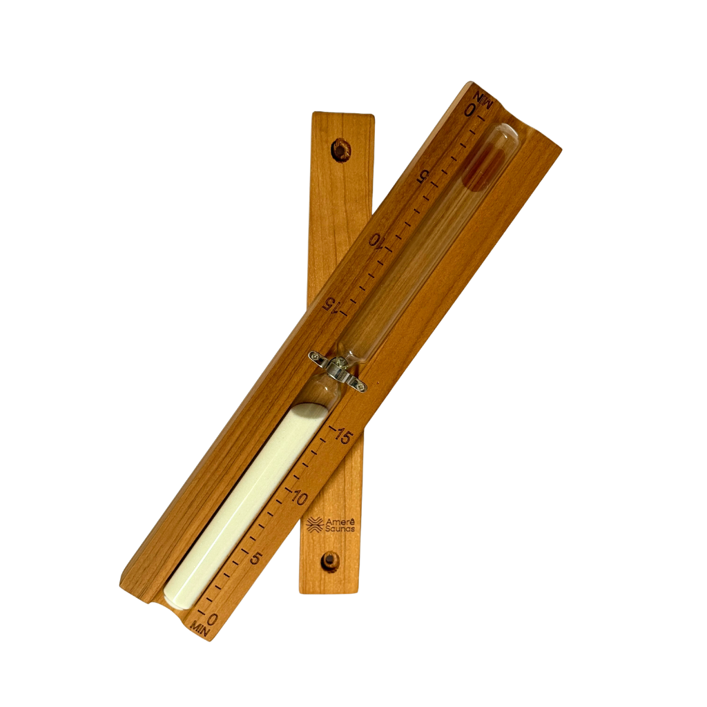 A ampulheta para sauna em Thermowood da Amerê combina design elegante e funcionalidade. Seu timer de 15 minutos é perfeito para acompanhar o tempo na sauna, enquanto a madeira tratada confere beleza, resistência e durabilidade em ambientes de calor e umidade.