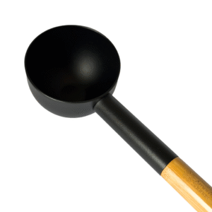– Alça do balde e cabo da concha em bambu, facilitando o manuseio