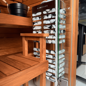 O aquecedor de sauna Revive Slim é compacto, porém elegante e poderoso, fabricado com materiais da mais alta qualidade e projetado para proporcionar uma experiência de sauna realmente incrível. Seu design em torre suporta até 70 kg de pedras e garante um alto fluxo de ar, possibilitando que grandes volumes de água sejam jogados no aquecedor, gerando bastante vapor e aumentando a umidade e a sensação térmica no ambiente.