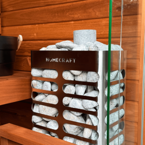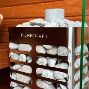 O modelo está disponível nas potências de 4 kW, 5 kW e 6 kW e o kit completo inclui as pedras ígneas próprias para sauna e um elegante painel de comando digital.