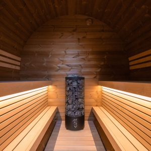 A sauna finlandesa Nevoa é uma sauna barril para quem busca modernidade. Esta sauna pronta conta com as madeiras mais nobres e exclusivas, além de acabamentos de primeira linha, elementos que se aliam para criar um ambiente luxuoso e convidativo para uma experiência única e autêntica de sauna.