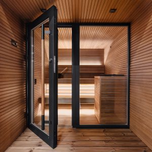 Seu design é diferenciado e extremamente robusto, feito para suportar os extremos do clima nórdico. A sauna Arti conta ainda com iluminação interna e externa, vidros insulados e temperados, proteção UV e acabamento suave, de qualidade sem igual.