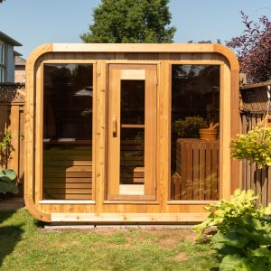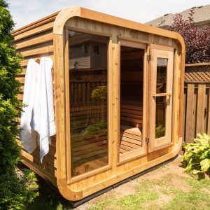A sauna Luna é um modelo de sauna diferente e tipicamente canadense. Com seus cantos arredondados, ela se torna uma presença suave e, ao mesmo tempo, marcante, no quintal ou jardim.