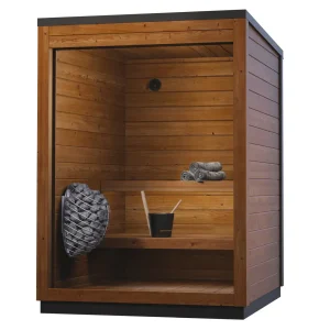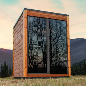 A sauna pronta outdoor Monai Mini é uma sauna finlandesa artesanal que conta com um elegante design escandinavo atemporal, capaz de elevar sua experiência de bem-estar ao ar livre. É uma sauna em madeira, que representa a combinação perfeita de modernidade e funcionalidade, sendo um verdadeiro convite a uma sessão de sauna autêntica e inesquecível.