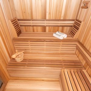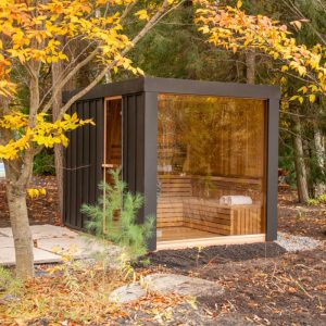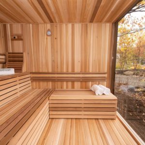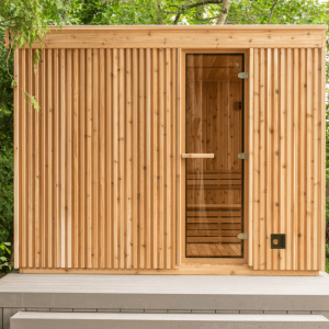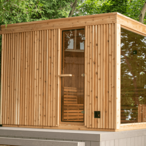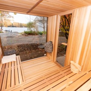 A sauna outdoor Neptune traz a natureza externa para seu interior com sua frente toda em vidro insulado e temperado, na agradável tonalidade bronze. A Neptune conta, ainda, com piso, paredes e teto totalmente isolados termicamente, garantindo excelente eficiência energética.