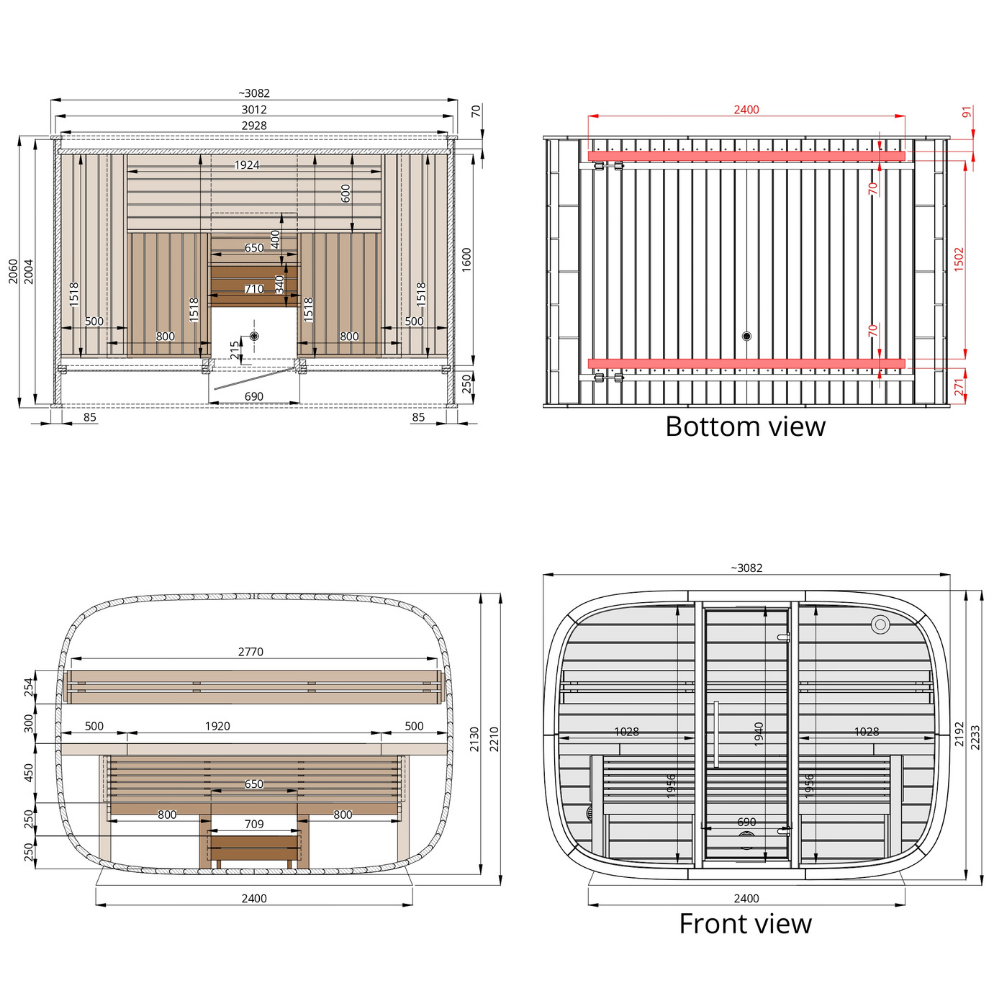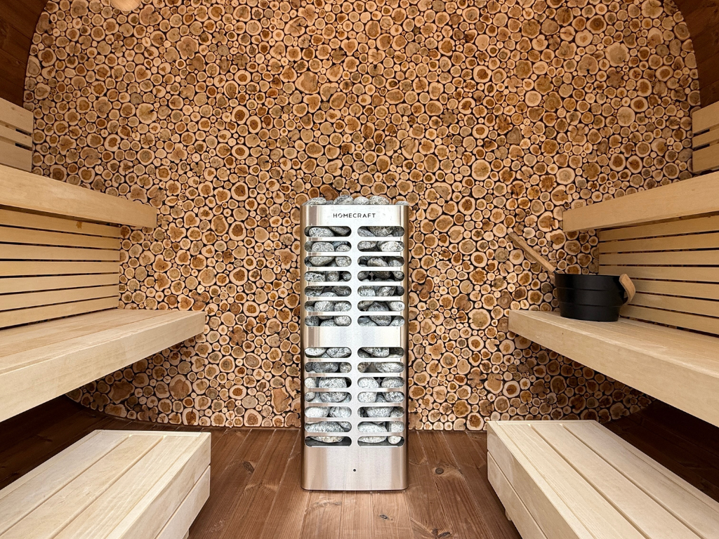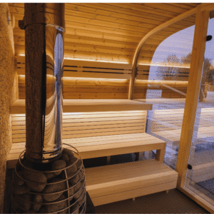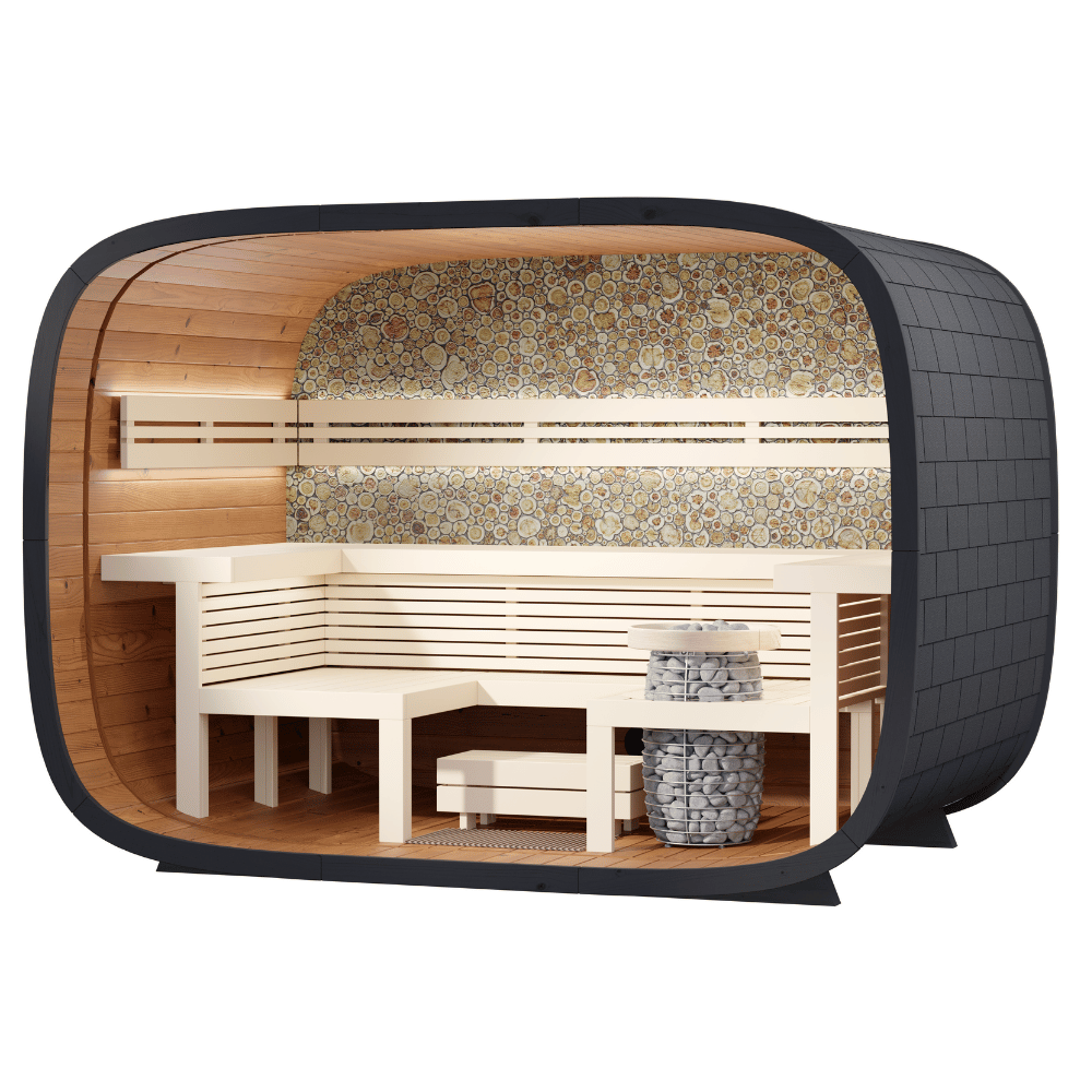 A sauna outdoor RoundCube é uma verdadeira peça de arte moderna. Sendo vencedora do renomado prêmio internacional de design Red Dot Awards em 2024 e fabricada de maneira artesanal em pine europeu termicamente tratado (Thermowood®), com três níveis de bancos e encostos de costas em alder europeu, além de um elegante e inconfundível painel em juniper, a sauna RoundCube é uma opção incrível para quem busca uma experiência espetacular de sauna e fugir do comum.